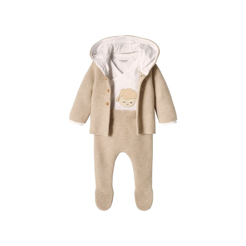 Vertbaudet 3 Piece Foam Dot Baby Set, beige heather