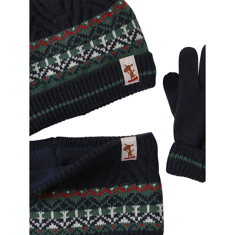 Boys Christmas Set 3 Piece Soft Jacquard Mesh 100% Acrylic