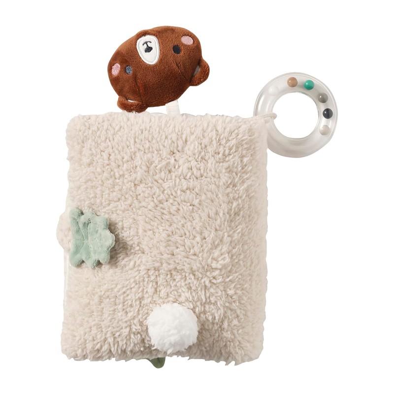 An activity book to awaken baby's senses and store family photos inside. Inside, rings, mirror... and pockets to insert the photos. A great gift idea for a birth that brings joy to the baby and his parents!
