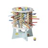 The aim is to be the first to let all the fish of its colour fall down by pulling out the sticks. If the fish falls into the same colour zone below, the dots count double. The cube determines what colour the stick must be to be pulled out.