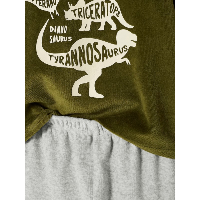 Your little boy only talks about day-length dinosaurs? With this set of 2 velvet pyjamas, his passion follows him even at night.