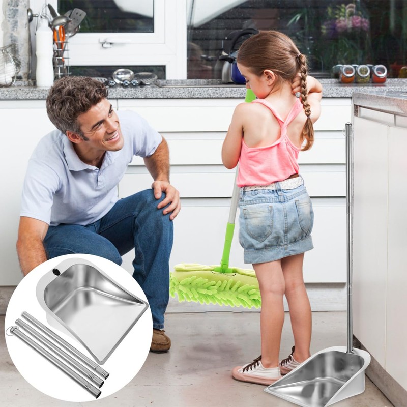- HEAVY DUTY INDOOR & OUTDOOR DUSPAN This stainless steel dustpan with long handle is ideal for collecting garbage in kitchen, home and garden and provides durability and strength.