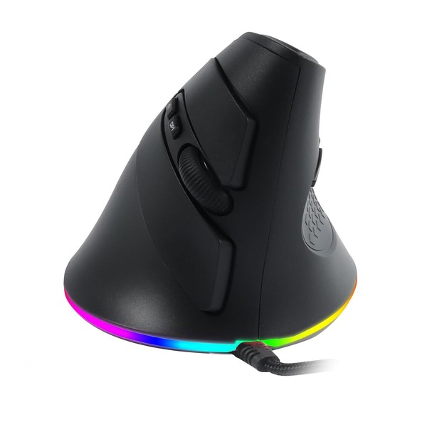 Vertical Mouse Wired 7 Buttons 6 DPI Modes Optical Gaming Mouse with LED Light Mode Switching Programmable Ergonomic Right Hand Vertical Large Size for PC Laptop Computer (Black)