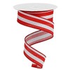 Vertical Stripe Wired Edge Ribbon - 10 Yards (White, Red, 1.5")