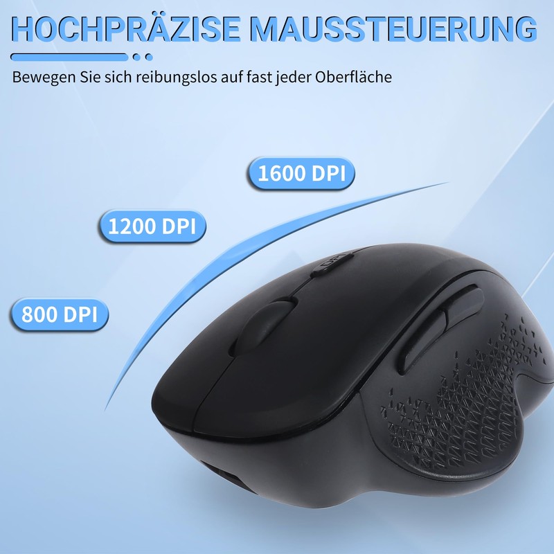 Vertical Wireless Mouse, Bluetooth + 2.4 GHz Radio, Dual Mode Rechargeable Vertical Mouse, Ergonomic Design, 1600 DPI 6 Buttons for Windows, Android, iOS, Laptop, PC, Computer, Tablet (Black)