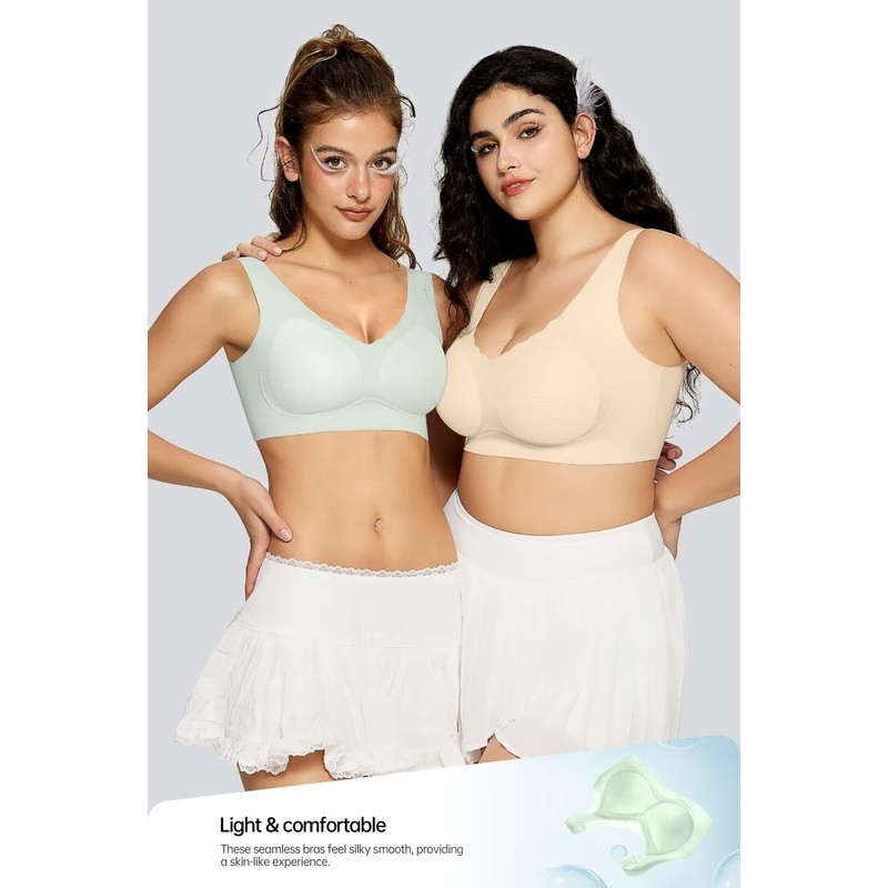 • Scalloped Wireless Comfy Bras: Seamless Cooling Bra! Our comfort everyday Bra features a stylish scalloped V-neck design that offers a subtle push-up effect, enhancing your natural shape. The full-coverage design ensures that everything stays in place, providing confidence and security throughout the day