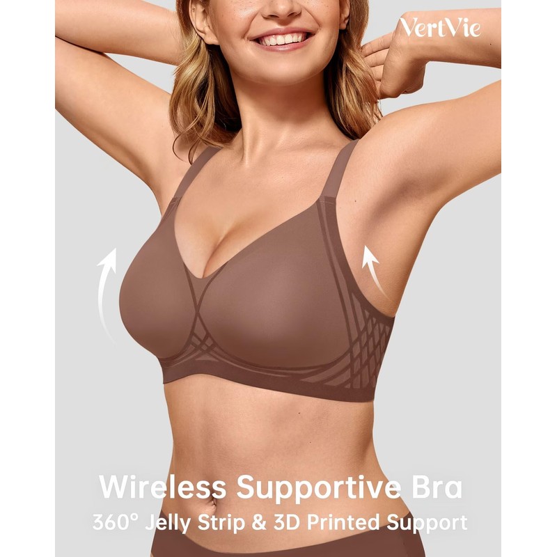 - Innovative 3D Printed Support: Our wireless supportive bra uses advanced jelly strip bonding and a new 3D printed support system. This offers great support and lift while shaping flattering curves. The 3D molded cups naturally enhance and keep a full shape, preventing sagging. Plus, the stretchy underband stays in place, so it won't slip or roll up during daily activities.