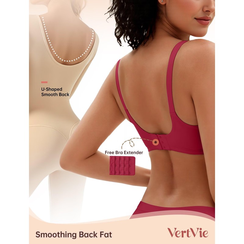 Vertvie Womens Wireless Bras No Underwire Push Up Bra Seamless Supportive Full Coverage Everyday Bras Regular and Plus Size(Burgundy,Large)