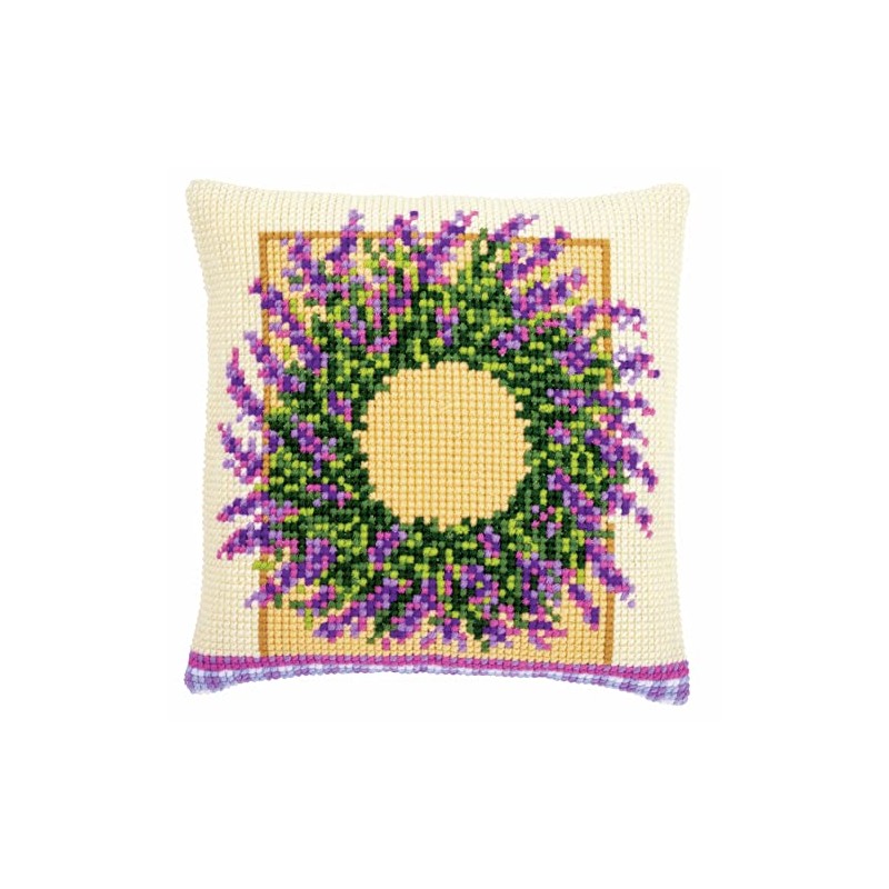 Vervaco Counted Cross Stitch Cushion Kit 16"X16"-Lavender Wreath
