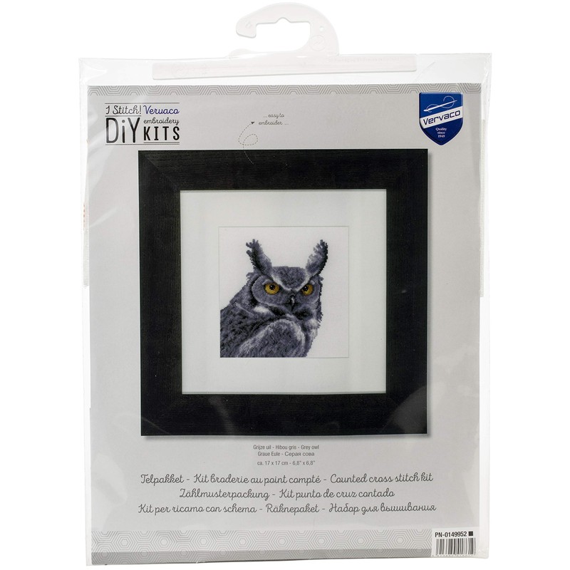 Vervaco Cross Stitch KIT, Grey Owl On Aida (18 Count), One Size