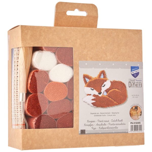 Vervaco Latch Hook Shaped Rug Sleeping Fox, Acrylic, Brown and White