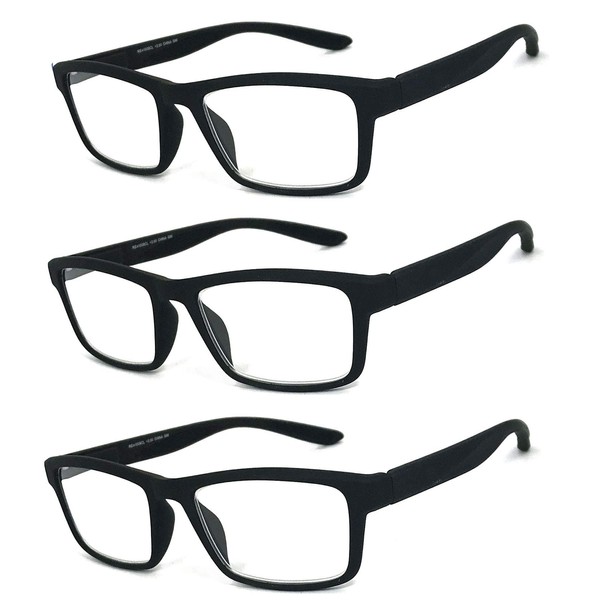 VeryHobby Men Women Retro Square Rubberized Frame Reading Glasses Spring Hinges (3 Pairs - Black/Black/Black, 2.25)