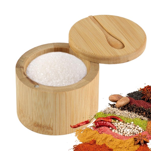 - Natural Material: Crafted from premium bamboo with a mineral oil finish, this bamboo salt cellar ensures no chemical smell, offering a safe solution for your kitchen storage needs. Easy maintenance: simply wipe with a damp cloth and air dry in a ventilated area.