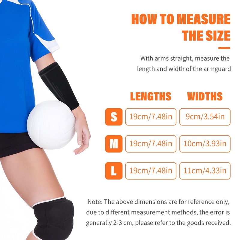 • Product size: Our volleyball sleeves are available in 3 sizes, which are S/M/L, 19 cm long and 9/10/11 cm wide. They are suitable for men and women weighing between 40 and 85 kilograms.