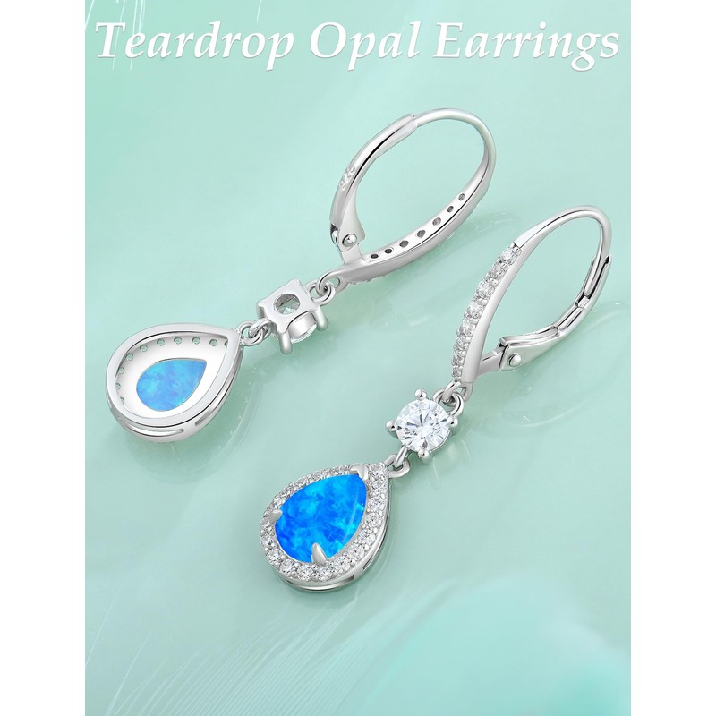 Vesitim 925 Sterling Silver Earrings Opal Earrings for Women Teardrop Earring Blue Opal Jewelry