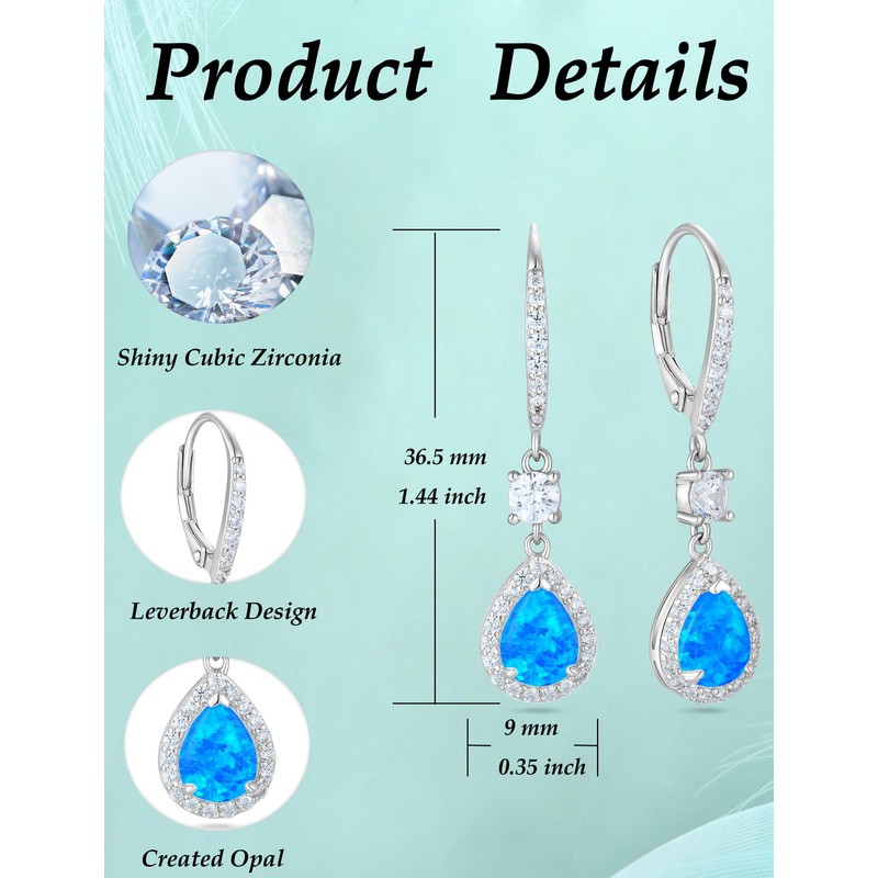 - 【Earrings Dimension】Women Teardrop Dangle Drop Earrings height: 1.44"(36.5mm),width:9mm;set with round-brilliant-cut cubic zirconia and 6x8mm pear-cut created blue opal