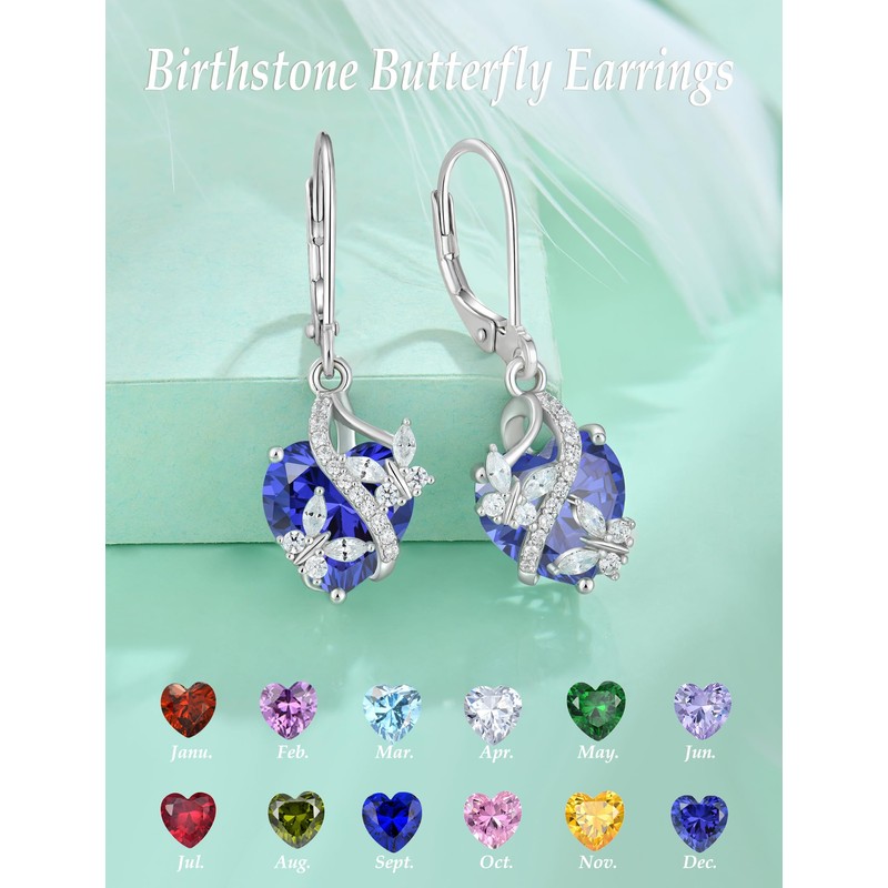- Vesitim Design:Heart Shaped Infinity Butterfly Earrings with big birthstone love heart design,which symbolizing beautiful and genuine love between life and death