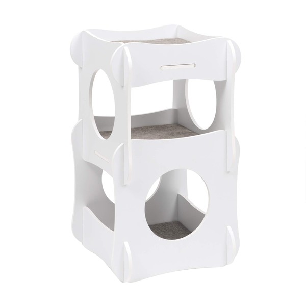 Vesper Cat Furniture, Condo, White is the perfect convergence of innovative design, cat-friendly materials, and meticulous workmanship. The result is an elegant yet practical line of modern cat tree furniture that satisfies the daily activity needs of fussy felines and the aesthetic tastes of cat lovers. Every stunning piece of cat tower furniture features varying combinations of cozy cat house cubes, cat condos and towers, cat shelf and cat perch platforms, cat beds and cat tunnels, as well as strategically placed cat scratch pad scratching areas. The Catit Vesper Condo is a cat tower with 3 levels for cats to nap, play and lounge on. Each level is open on all sides so your cat will never feel cornered. This piece has a retro 70's design and is equipped with soft cushions that are detachable and can be replaced. Like most other Vesper pieces, the Condo is made of high-quality MDF with white-laminate finish. What makes this piece unique is that it is very easy to assemble, no tools required. The Vesper line offers other cat furniture pieces including cat trees and towers, cat scratchers, cat hammocks, cat condos, cat houses, cat boxes, cat scratching posts, small cat trees, tall cat trees, and cat houses for indoor cats. Vesper is one of the many brands created by Catit. Catit is focused on creating cat enrichment toys and activities for all cats especially indoor cats. Cat toys for indoor cats should encourage a cat’s natural foraging and hunting behaviors. Catit has produced a large selection of cat supplies with this in mind. Some of the other products include interactive cat toys, cat treats, cat feeders, cat water fountains, cat litter box with lids, cat dishes, cat puzzle feeders, cat litter, cat litter mat, cat litter deodorizers, cat carriers, cat grass, cat leashes, cat harnesses, cat collars, cat brushes, cat food bowls, dry cat food, wet cat food, cat food mats, cat slow feeders, cat grooming tools, cat food, cat bowls, catnip, and other cat accessories.