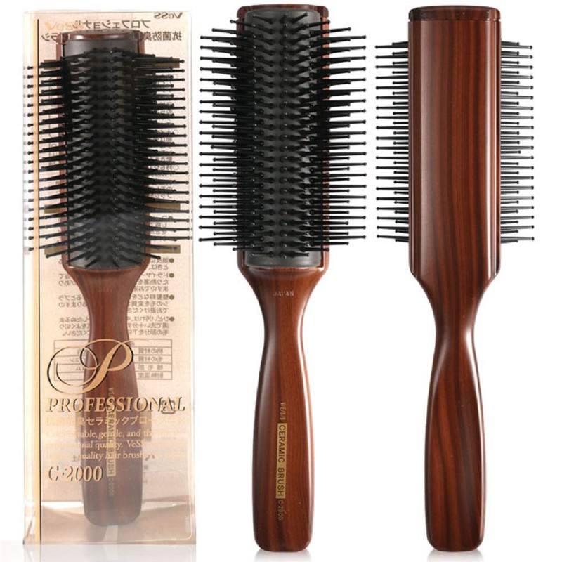 Vess C-2000 Professional Hair Brush Tourmaline Ceramic 9 Row Round Tip Curved Pad Anti-static Natural Rubber Specialized Pin Structure