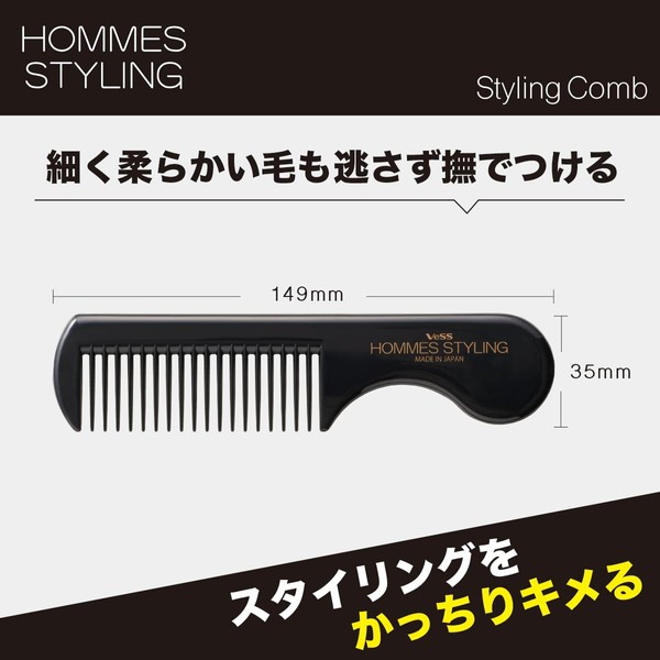 VESS Mesh Comb, Made in Japan, Men's, Coarse, Pomade, Barber Style (Black Fade)
