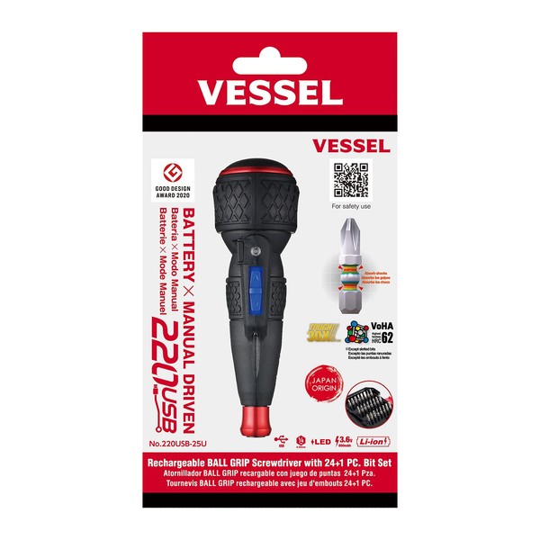VESSEL BALL GRIP Rechargable Screwdriver with 25PC. Bit Set
