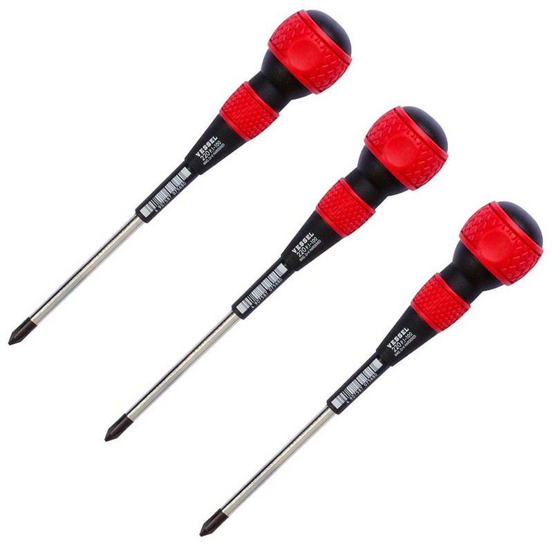 VESSEL Ball Grip Screwdriver No.220 Plus 1 x 100 3 Piece Set