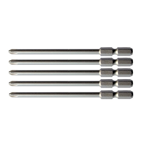 Resists abrasion. Works with hard screws! [Uses] Screw tightening work. [Functions and Features] Ideal for hard and stainless steel screws. ● Suitable for coarse thread board screws. Holder case included. Specifications: Size: (+) NO.2. Total length: 3.9 inches (100 mm) Shaft diameter: 0.25 inch (6.35 mm) diagonal hexagonal side. Magnet included. Set of 5 high-hardness bits with steps. Product Size: Height: 3.9 inches (100 mm); Product Code: 4907587356611; JAN Code: 4907587356611; Brand Name: Vessel; Product Name: High Hardness Bit Set; Standard: BW-39