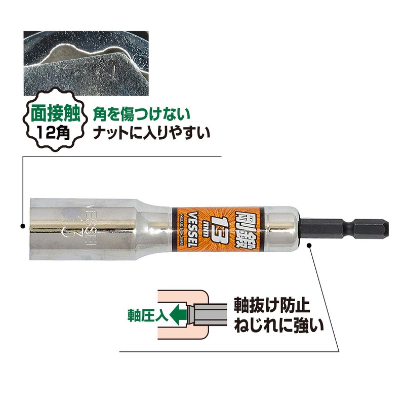 Vessel LA201311 Deep Hole Socket, 12 Angle, 13 Opposite Sides, For Bolts and Nuts