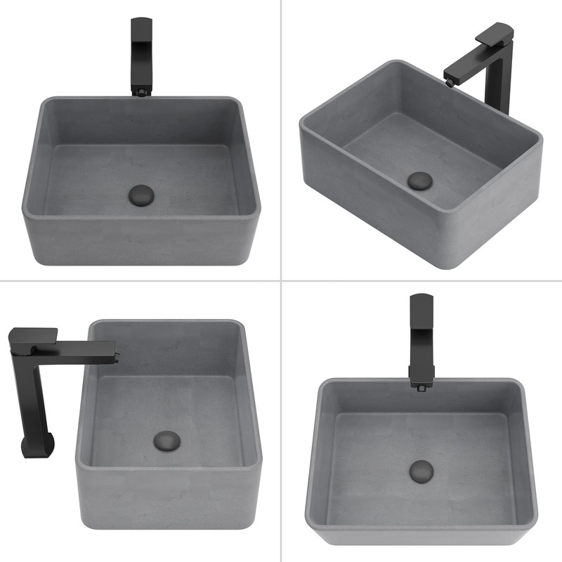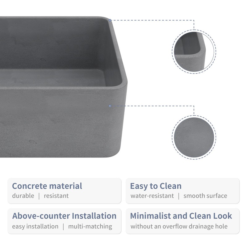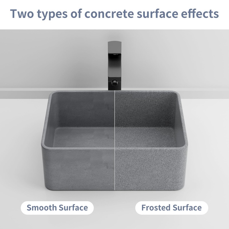 Vessel Sink 16"X12" Concrete Bathroom Sinks Rectangular Vessel Sinks for Bathroom Sink for Countertop Bathroom Vessel Sinks Modern Small Vessel Sink Bowl Sinks for Bathrooms Smooth Surface Dark Gray