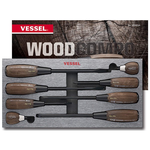 VESSEL WOOD-COMPO Non-Slip Tang-Thru Screwdriver (8PC. SET 3308EVA)