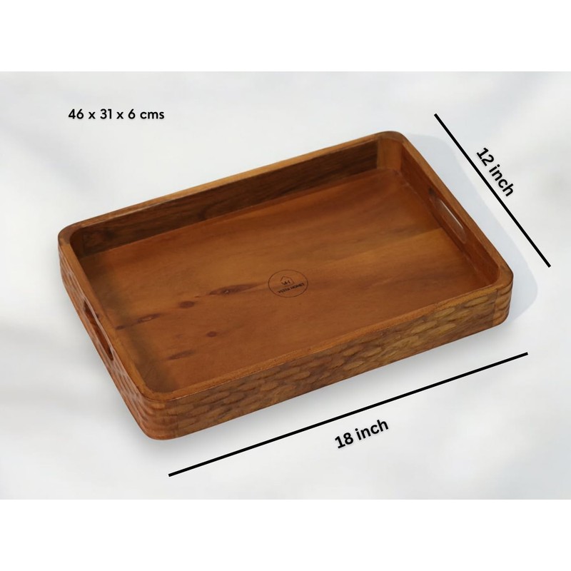 Vesta Homes Acacia Wood Serving Tray for Home/Kitchen/Restaurant/Office Organizer/Dining Table | Premium Serving Trays | 18 x 12 x 2.25 Inches | Handcarved in India
