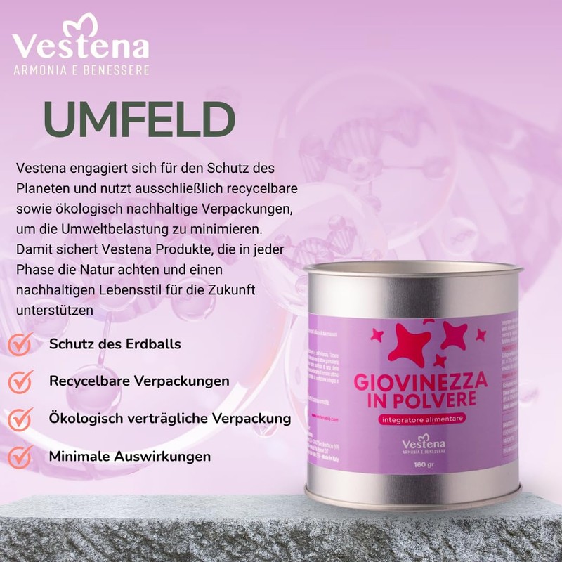 VESTENA Vestena C Hydrolysiertes Meereskollagen Typ 1 in Pulverform mit Hyalurons?ure & Vitamin C C Antiage Haut, Haare, N?gel C Nahrungserg?nzung Frau Mann C Made in Italy C Angenehmer Geschmack C 160g