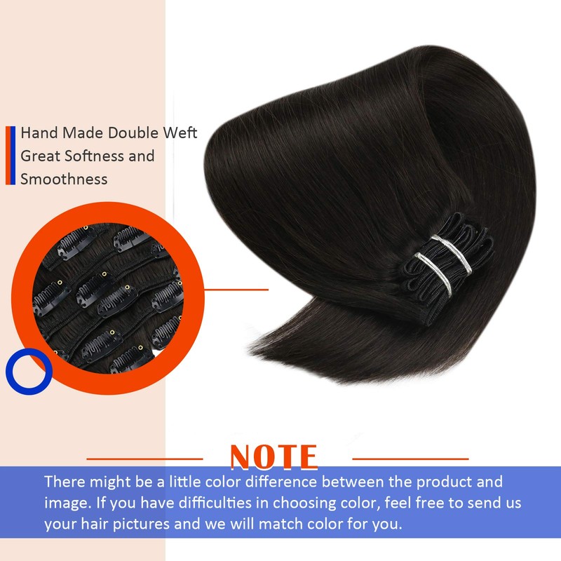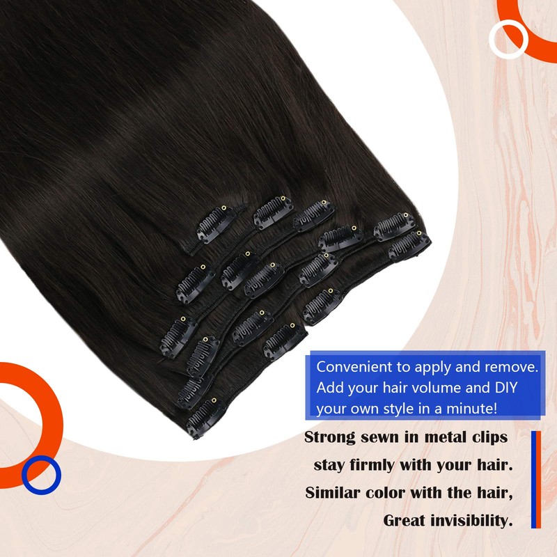 - ♥VeSunny hair clip in extensions dark brown♥ Get full & long hair in minutes! Clip in extensions human hair brown is classic hair extensions, very convenient, comfortable and secure to add volume and length. 7 double weft hairpieces in different width, will make a full head and layered hair style!