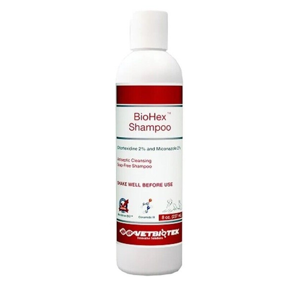 Give your furry friend a luxurious bath with this BioHex Shampoo from Vet Biotek. This 8 oz pet shampoo is specially formulated to cleanse and soothe your pet's skin without causing any irritation. The shampoo is perfect for dogs of all breeds, types, and ages.