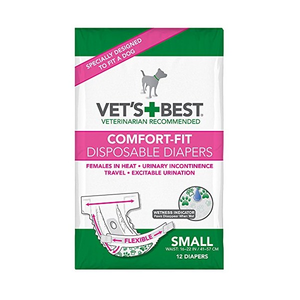 Vet's Best 12 Count Comfort Fit Disposable Female Dog Diapers, Small