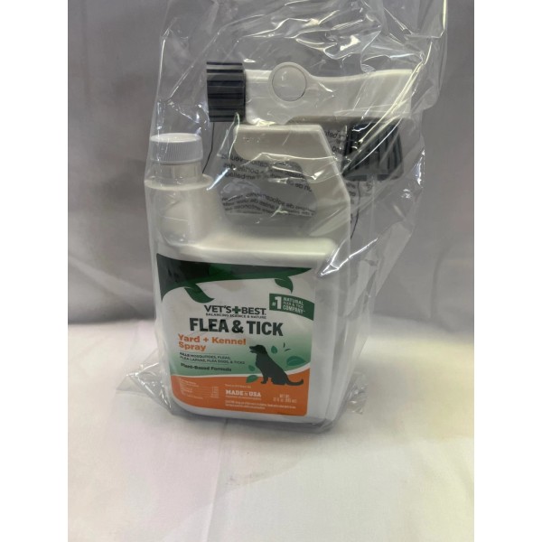 Vet's Best Natural Flea and Tick Yard and Dog Kennel Spray, Plant Safe Tick Spray for Yard with Ready-to-Use Hose Attachment, Mosquito Repellent with Natural Oils, Flea Prevention for Dogs, 32 Ounce