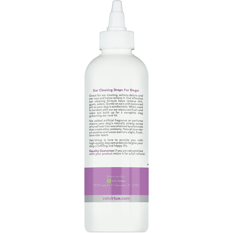 - Effective Dog Ear Cleaner - Our dog ear cleaner is proven to help clean dirt and debris and wax build up from your dogs ears as well as helps provide relief from itching, scratching, and foul odors, due to its cleaning properties. Used with our Vet-Virtue Dog Ear Wipes to wipe up all the gunk for a complete dog ear cleaning kit
