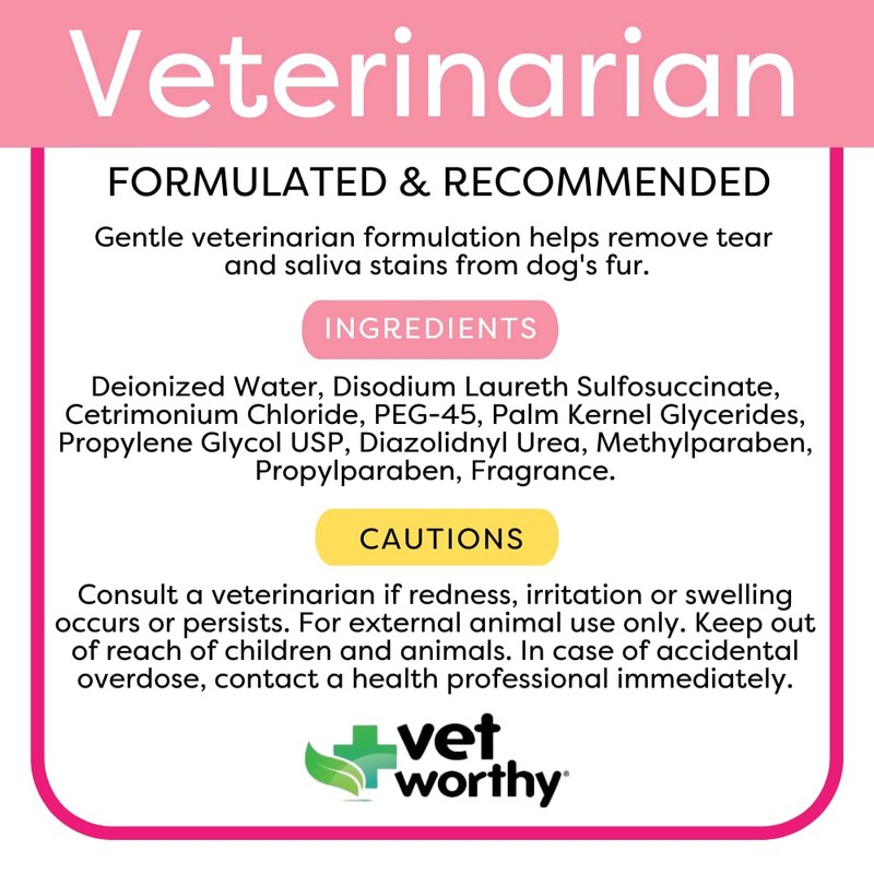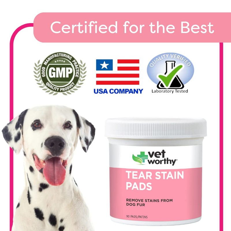 - Helps Remove Tear and Saliva Stains From Dog’s Fur: These tear stain pads for dogs from Vet Worthy helps in removing stains and cleaning your dog's coat. Use this to restore and maintain a healthy coat. Non-irritating formula, super gentle and safe for dogs. Regular use will help prevent future stains.