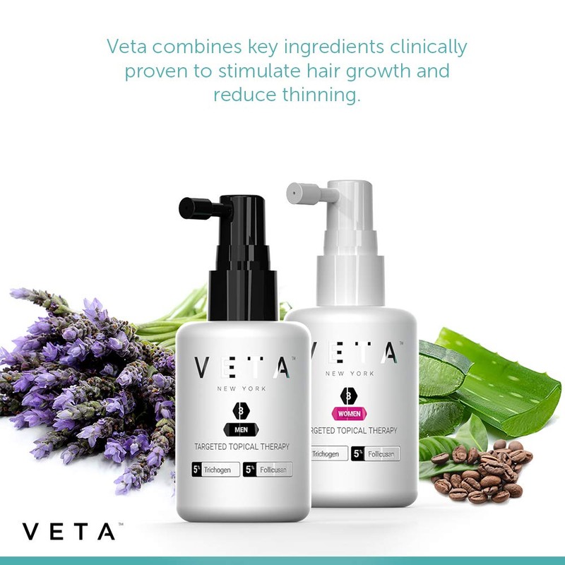 • 5% TRICHOGEN AND FOLLICUSAN: Veta Men’s Targeted Topical Therapy contains 5% concentrations of proven hair growth compounds Trichogen and Follicusan.