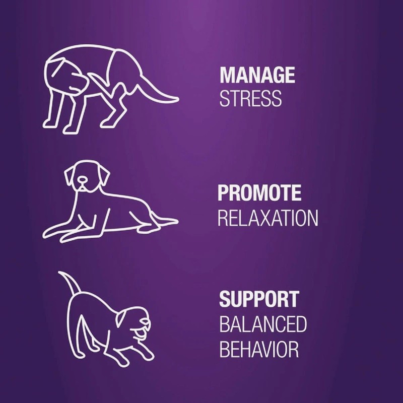 Calming supplement for dogs. As a dog parent, you want your dog to feel comfortable in their own skin. Veterinarians recommend VetIQ Calming to provide your dog with the right calming care they need to get through their playful day. Stress can your dog in a number of ways, whether its loud noises, cars, or even the mop, your dog balances regular stress and anxiety in their day-to-day life. Keep your dog's stress levels normal with VetIQ Calming to maintain your dogs state of relaxation.
