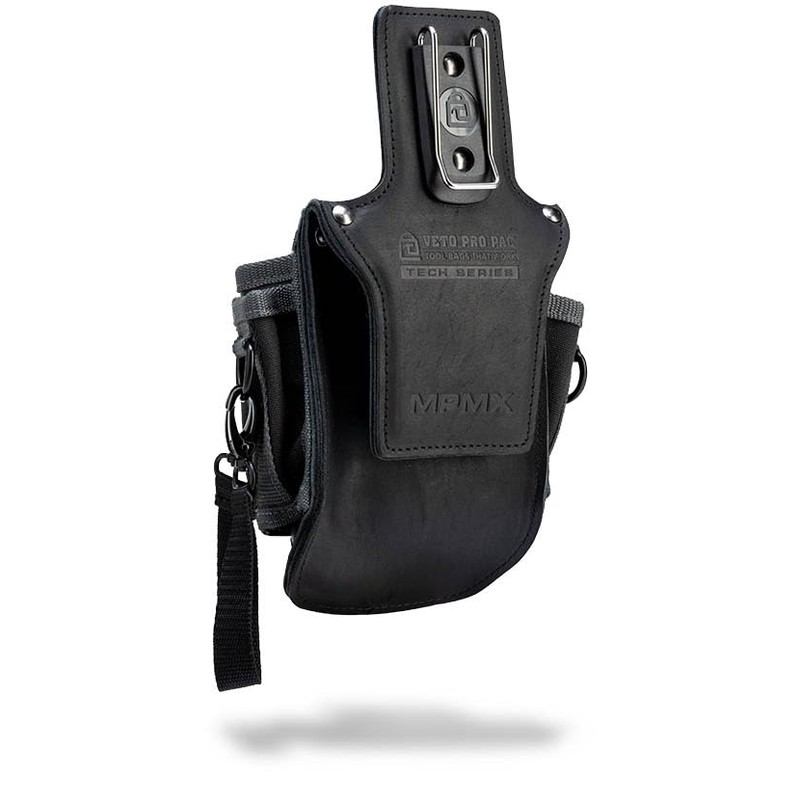 The MPMX is a medium-sized tool pouch with both a leather Back Pocket Stuffer, that easily slips into pants pockets for a quick retrievel, as well as wire-formed clip for securing to belts and Veto tool bags. Ideal for electrical testing the MPMX features a large main pocket in the center designed for storing a multi-meter (most sizes). A pair of thru-pockets on each side accommodates long shank or handled tools and 4 pen-sized pockets complete the sides of the pouch. The MPMX is topped off with a flush mounted stainless steel clip providing a durable connection point for hanging tools.