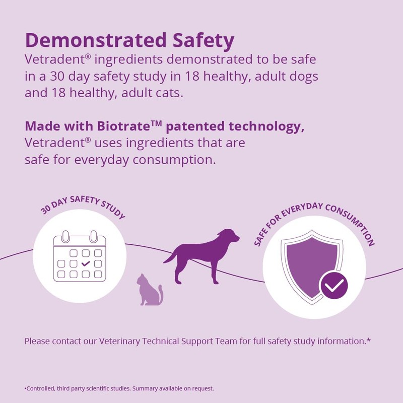Vetradent Powder Water Additive is scientifically formulated with Biotrate Technology to reduce tartar by working against bacteria and altering the environment in the pets oral cavity. This easy-to-use powder formulation is simply measured and mixed with your pets drinking water and is great for households with multiple pets or large dogs.
