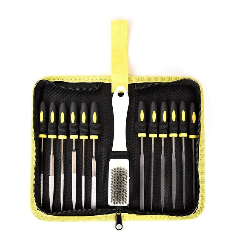 - 13PCs Metal File Set Professional Design:The files including round | flat | square | half-round | triangular | flat warding and 1 steel brush to suit various needs for filing, deburring, shaping, and smoothing metal, wood, plastic, and more.