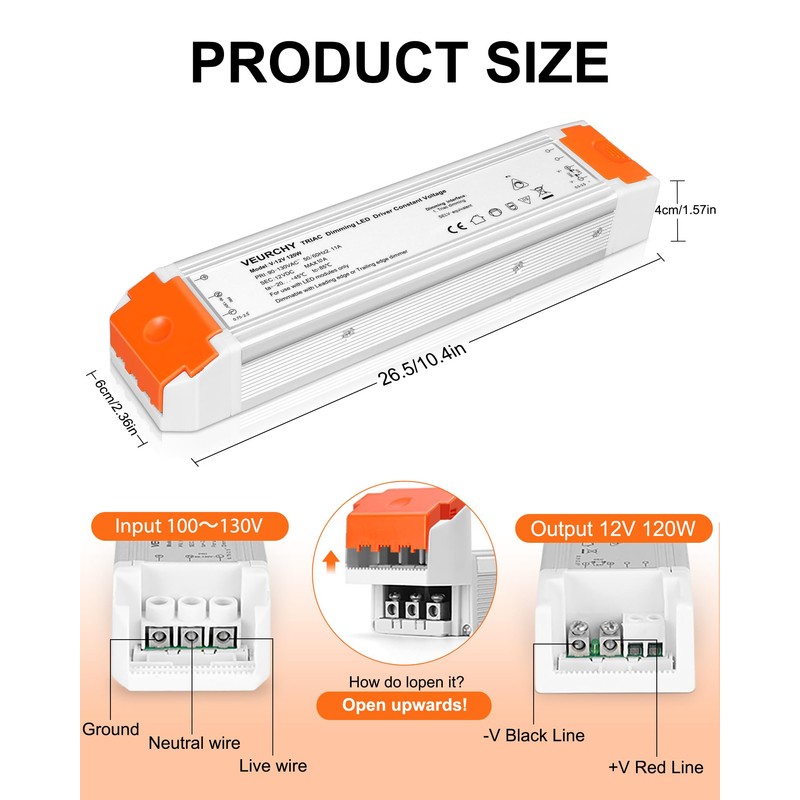 - 3-Year waranty: VEURCHY is committed to ensuring the quality of 120W 12V dimmable LED power supply, and we offer a 3-year waranty.If you encounter any issues with installation, troubleshooting, or product functionality, our team is prepared to provide timely support within 24 hours