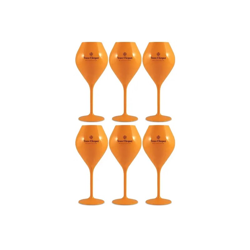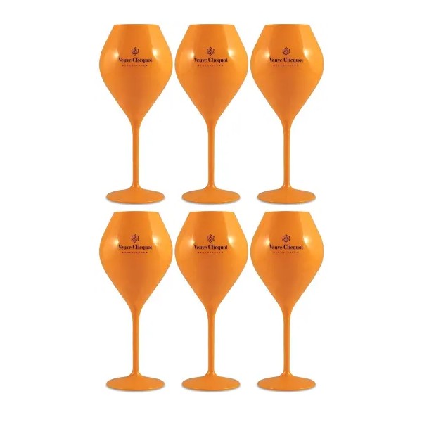 Veuve Clicquot Orange Acrylic Champagne Flute Goblets x 6 New