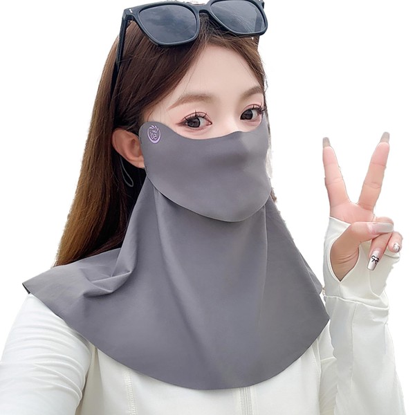VEVE & MIKI Women's Face Cover, UV Protection, UPF 50+, 360° Face & Neck Sun Protection, Antibacterial, Odor Resistant, UV Protection Mask, Face Mask, Chase Cover, double dark grey