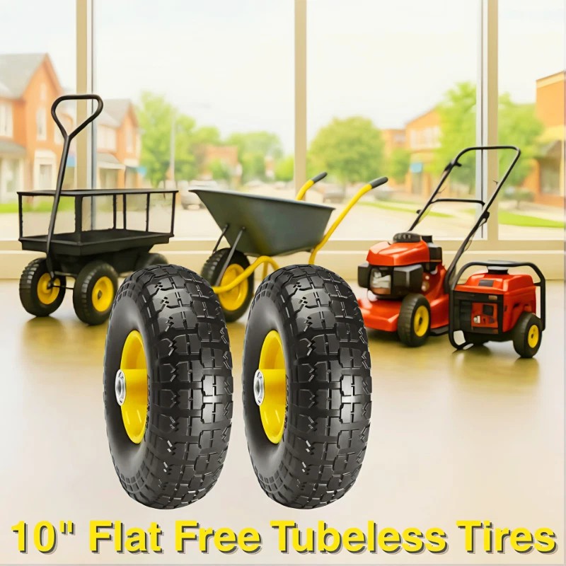 2-Pack Value: Includes two 10-inch flat free tire and wheel assemblies.
