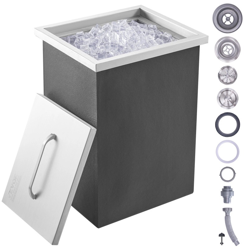 VEVOR 14"x12"x18" Drop in Ice Chest Ice Cooler Ice Bin Stainless Steel w/Cover