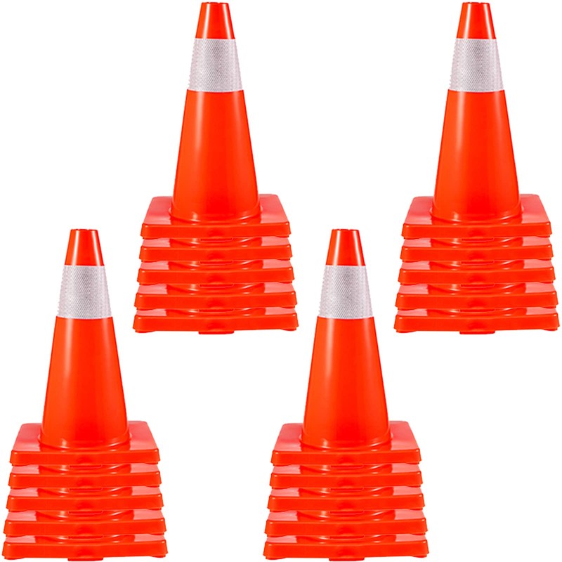 VEVOR 20Pack 18" Traffic Cones, Safety Road Parking Cones PVC Base, Orange Traffic Cone with Reflective Collars, Hazard Construction Cones for Home Traffic Parking