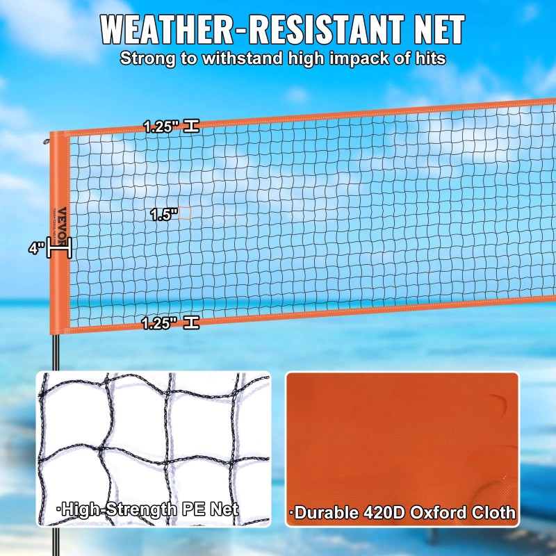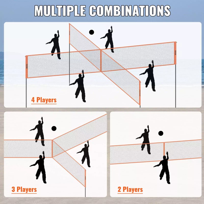 VEVOR 4-Way Volleyball Net, Adjustable Height Badminton Net Set for Backyard Beach Law